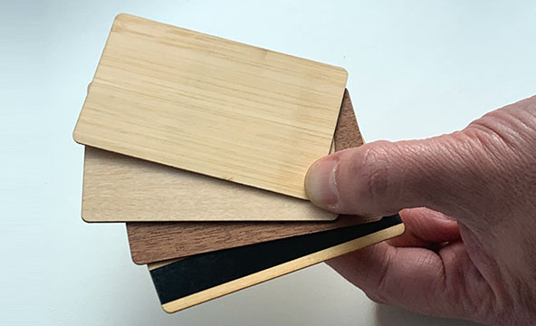 Nuestras tarjetas de madera tienen las mismas dimensiones que una tarjeta de P.V.C (según norma ISO 7810). Disponemos de distintos tipos de madera (consultar) y diferentes acabados como la impresión a color, marcado laser, banda magnética o RFID.